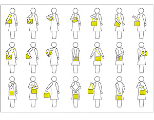In der Fußgängerzone mache ich ein paar Stunden lang Fotos und Skribbles davon, wie Frauen ihre Handtaschen tragen. Mal von der Hüfte gestützt, mal lässig am Handgelenk baumelnd. Manchmal unter dem Arm verborgen und ein anderes Mal auffällig demonstrativ platziert. Viele Frauen legen sichtlich Wert darauf, dass das Handtaschendesign zum gesamten Styling passt.