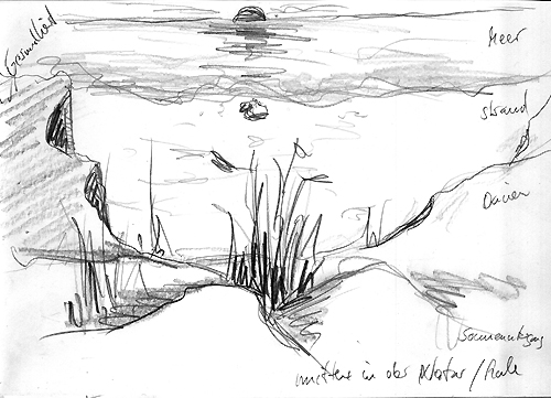 In unserer Forschungsstudie zum Thema „Gesundheitstourismus“ haben wir wissenschaftliche und künstlerische Forschung miteinander verknüpft. Die Zeichnungen aus den Interviews mit den Befragten haben den Charakter von künstlerischen Vorstudien. Streng genommen arbeiten wir hier noch wissenschaftlich, indem wir die Phänomene über eine projektive Fragestellung, Gesundheit projiziert auf Landschaft, erheben. Sie werden jedoch nicht verbal protokolliert, sondern visuell. Projektives Fragen geht jedoch bereits schon in die Richtung eines künstlerischen Blicks, da der Untersuchungsgegenstand „Gesundheit“ in den Kontext einer Landschaft  verrückt wurde. Das kann bereits dazu beitragen, die Eigentümlichkeiten der Vorstellungen von Gesundheit besser zu verstehen.