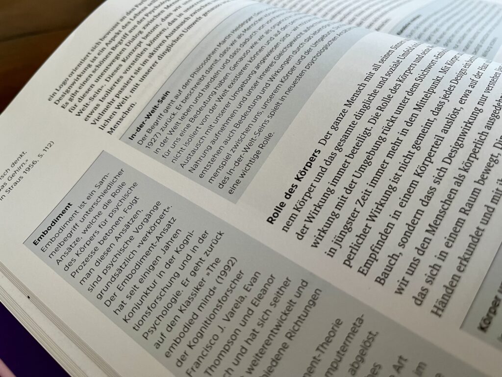 Mithilfe moderner Forschungsprogramme wie dem Embodiment, dem Enaktivismus und der 4E Kognition, der Psychologie von Atmosphären sowie Ansätzen zum neueren artistic research haben wir dem Buch eine neue Grundlage gegeben. Wir würden ja glatt behaupten, mit „Wie Design wirkt“ eine zeitgemäße (und überfällige) Designtheorie entwickelt zu haben. Eine Theorie, die v.a. für den Design-Praktiker nützlich ist.